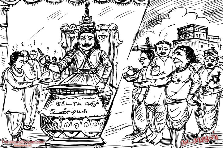 यदि अन्यायी राज के, रहना पड़े अधीन ॥ (५५८) तमिल (தமிழ்)முறைப்படி ஆட்சி செய்யாத மன்னவனின் கொடுங்கோலின்கீழ் வாழ்ந்திருந்தால், ஏழ்மையைக் காட்டிலும், செல்வம் உடைமையே துன்பம் தரும் (௫௱௫௰௮)